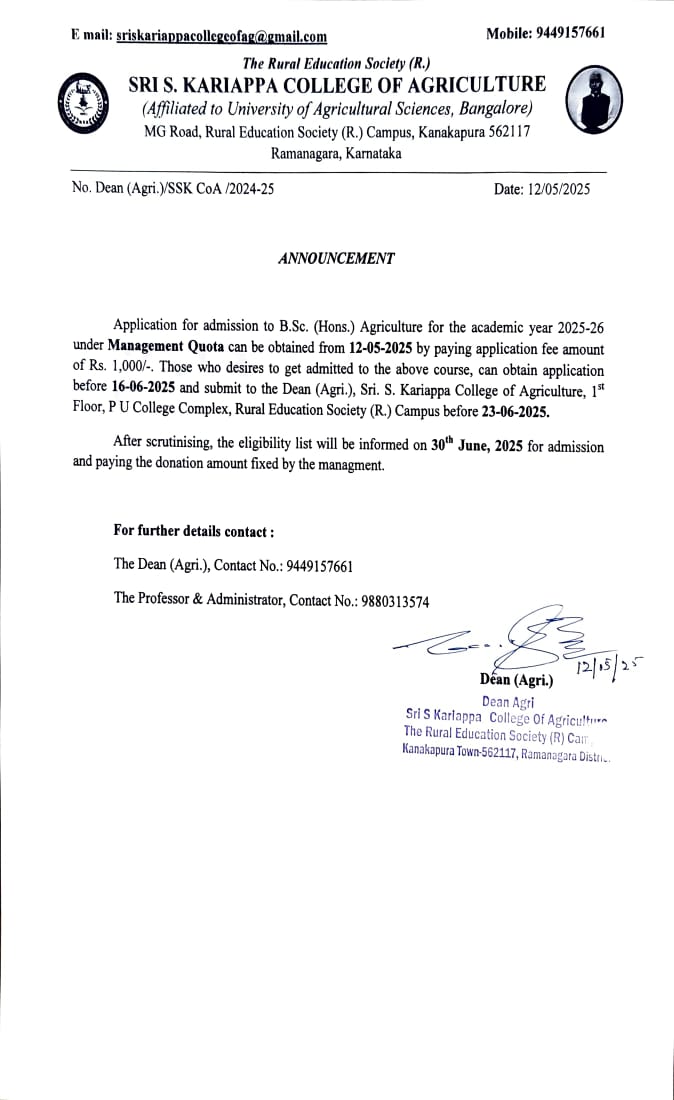 (Affiliated to University of Agricultural Sciences, GKVK, Bengaluru)